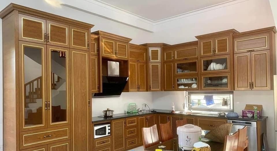 So với tủ bếp làm từ gỗ tự nhiên, tủ bếp nhôm kính giả gỗ thường có giá thành thấp hơn nhưng vẫn mang lại vẻ đẹp và tính tiện ích tương đương, là sự lựa chọn kinh tế và hợp lý cho nhiều gia đình.